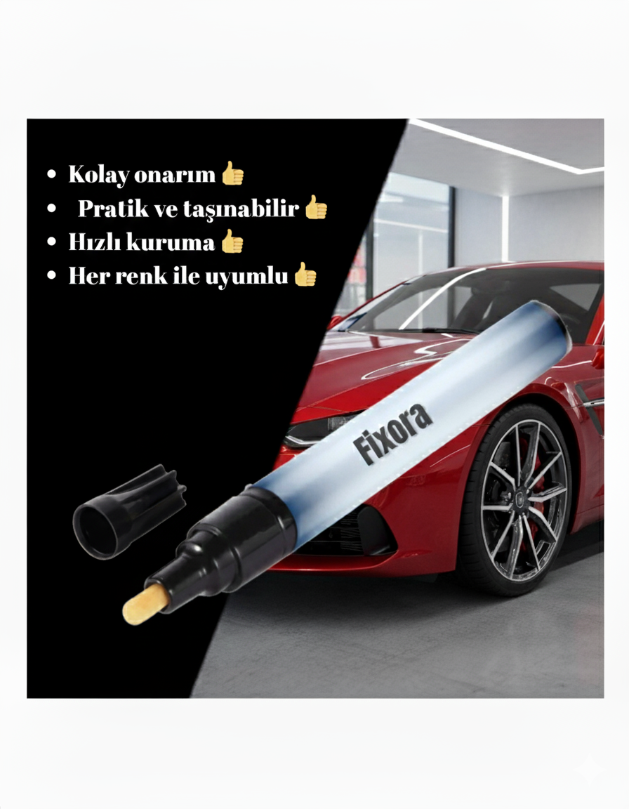 Fixora çizik giderici kalem, aracınızın yüzeyindeki yüzeysel ve kılcal çizikleri kapatmak için geliştirilmiştir. Ürün, vernik katmanı üzerinde oluşan hafif çizikleri doldurarak görünümün düzelmesine yardımcı olur.