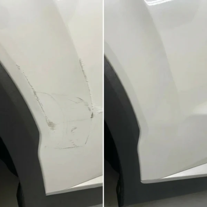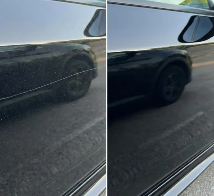 Bu bölgede çizik, boyanın üzerindeki vernik tabakasında kaldığı için gözle görülür şekilde azalmış ve kaybolmuştur.